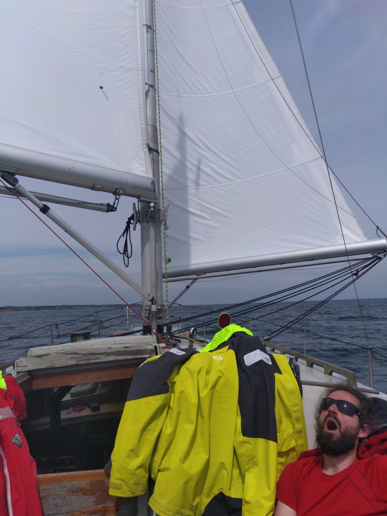 Ein Auszug aus dem Logbuch: „0500 bedeckt, kaum Wind. Unter Segeln Anker auf und abgelegt! 0713 Motor Start, Segel bergen. Zu viel Welle in der Bucht vor Sonderburg, keine Chance, dass wir dagegen ankommen. 0845 Motor aus. 0945 Motor an (kein Wind).“